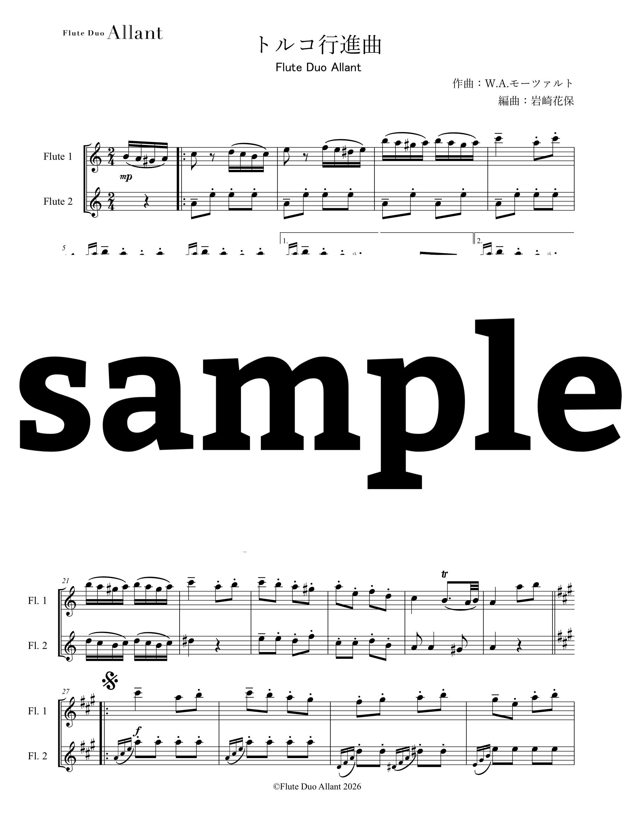 【PDF】トルコ行進曲 (2Fl) モーツァルト作曲 / 編曲:岩崎花保