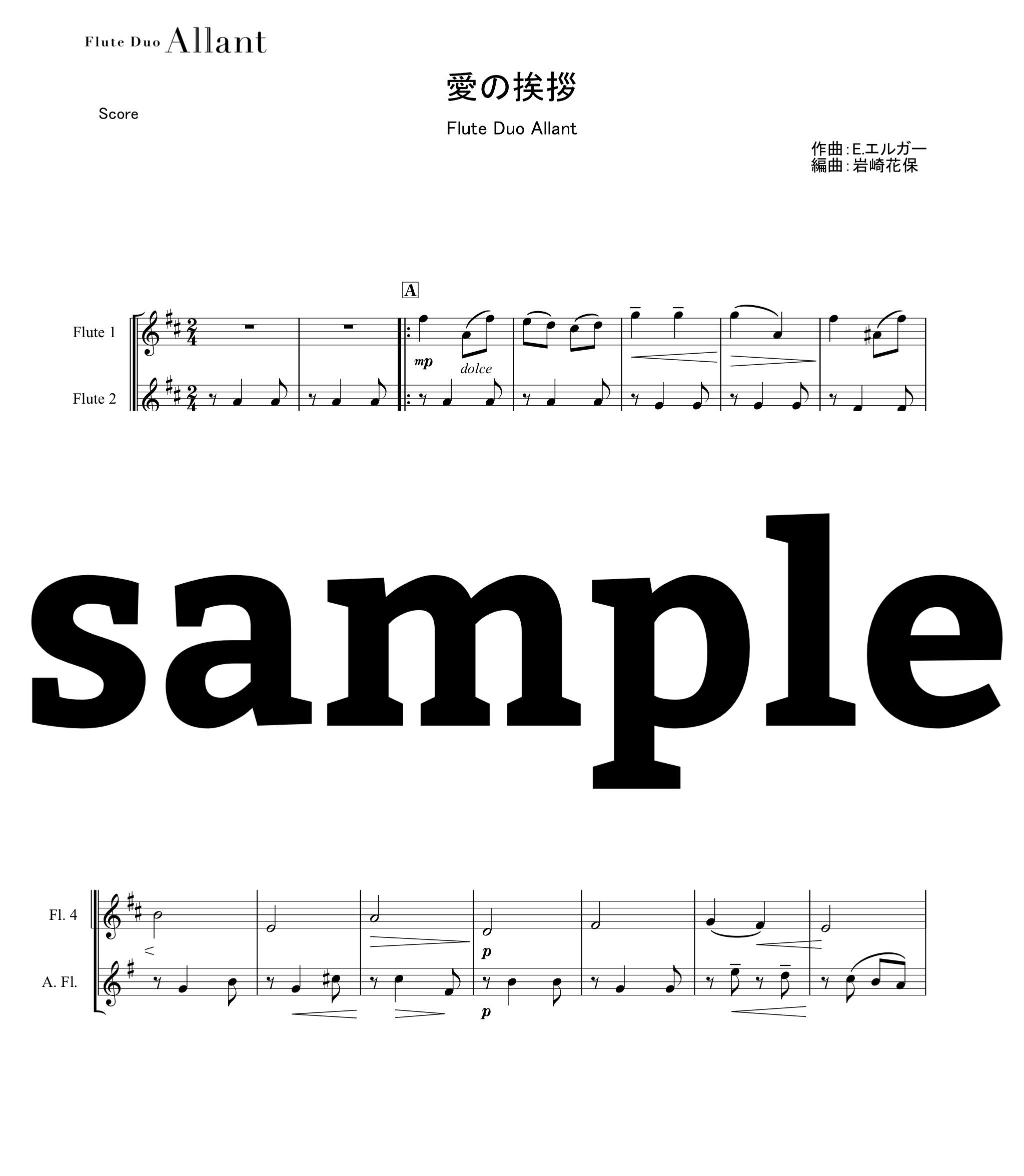 【PDF】愛の挨拶 (4Fl) エルガー作曲 / 編曲:岩崎花保